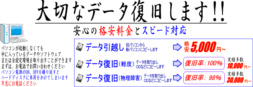 ・東京の大手データ復旧研究所とも提携していますので、より高度なデータ復旧(データサルベージ)もご依頼ください